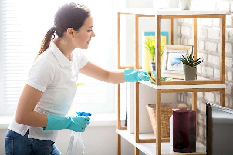 Удаление пыли со всех горизонтальных открытых Пинап мебели