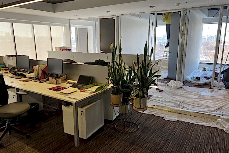 Мытье стеклянных перегородок после ремонта/установки
